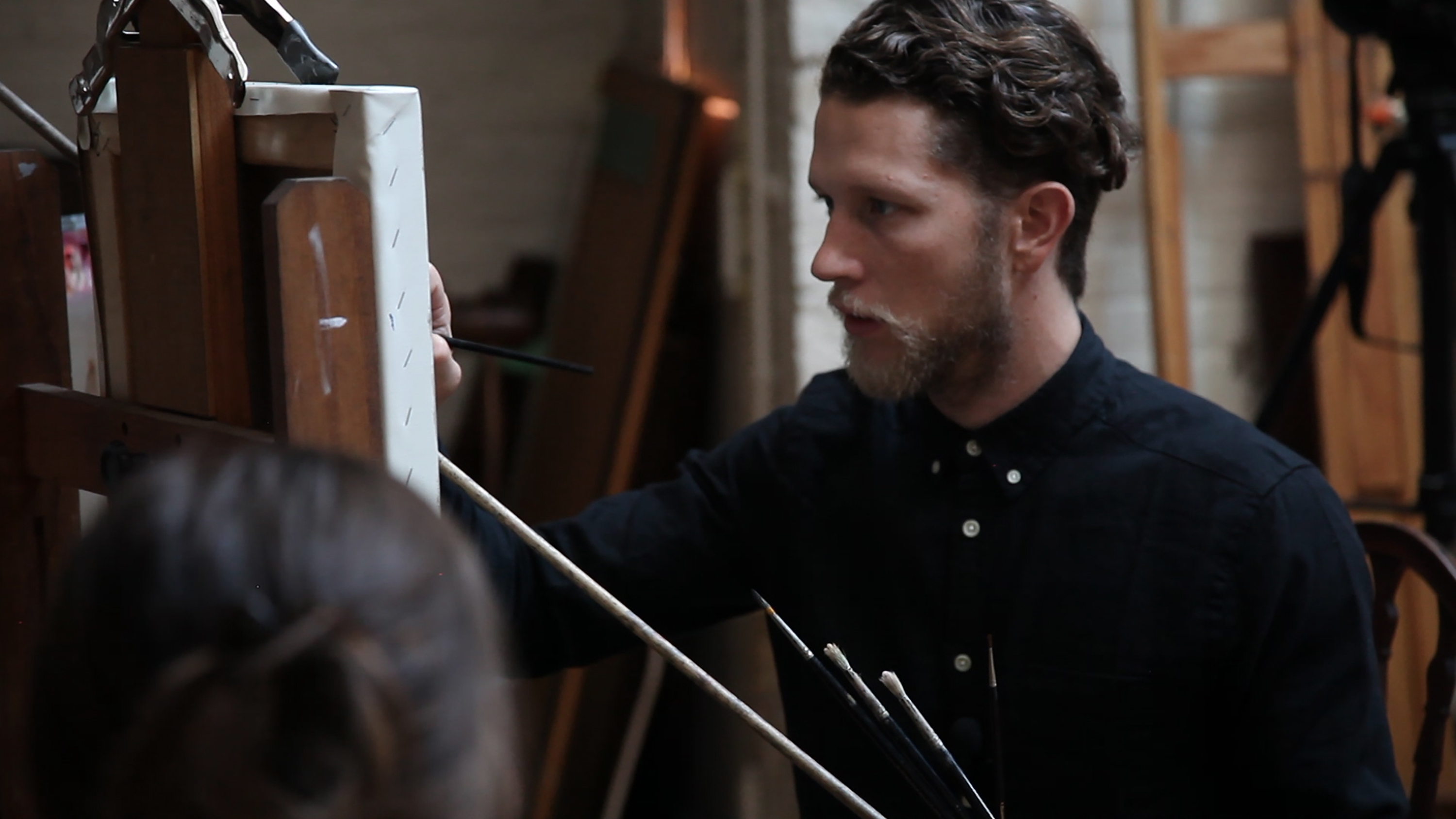 Joshua demonstrates his indirect oil painting technique, which is distinct from the alla-prima, or wet-in-wet, method in that it is done in layers and can therefore achieve wonderful and subtle effects by the use of semi-transparent veils of paint.
